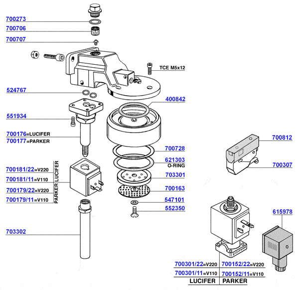3-way LUCIFER solenoid valve flat base 220v 50/60 (complete)