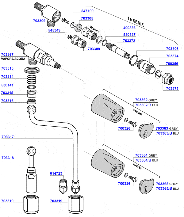 Steam water valve ellisse without knob