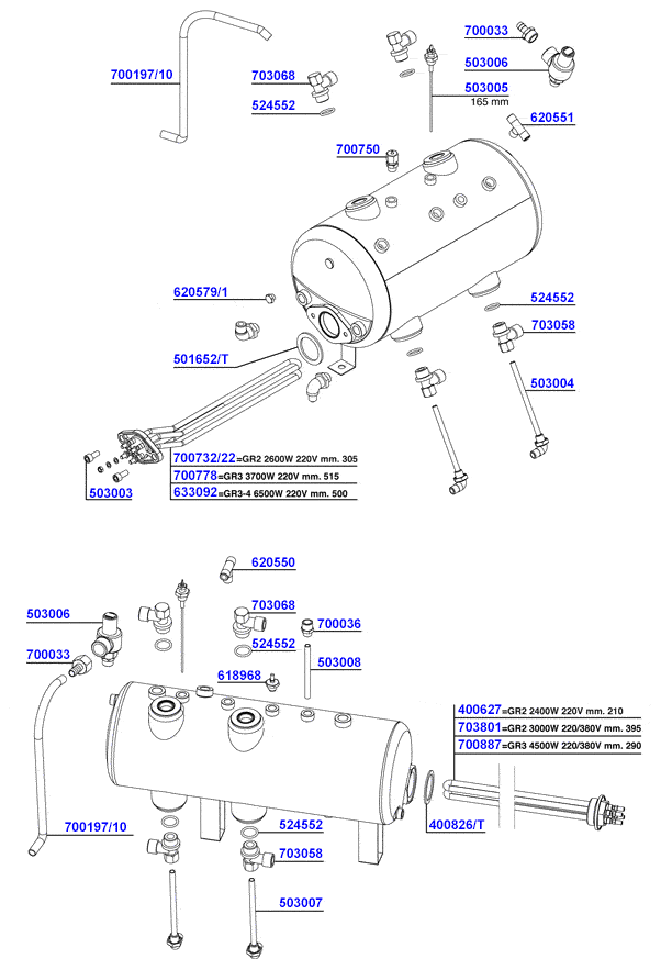 Heating element 3/4-group 6500w 220v