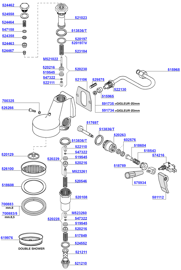 E61 Type Group Head Jet - M6x0.75mm - Hole Ø 0.6mm
